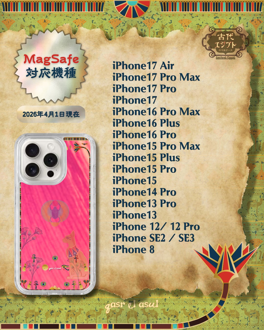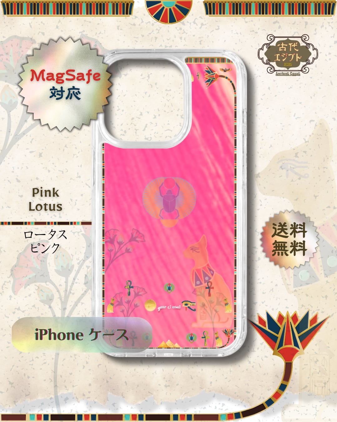 MagSafe対応| Ancient Egypt 古代エジプト|ピンクロータス|耐衝撃 iPhoneケース
