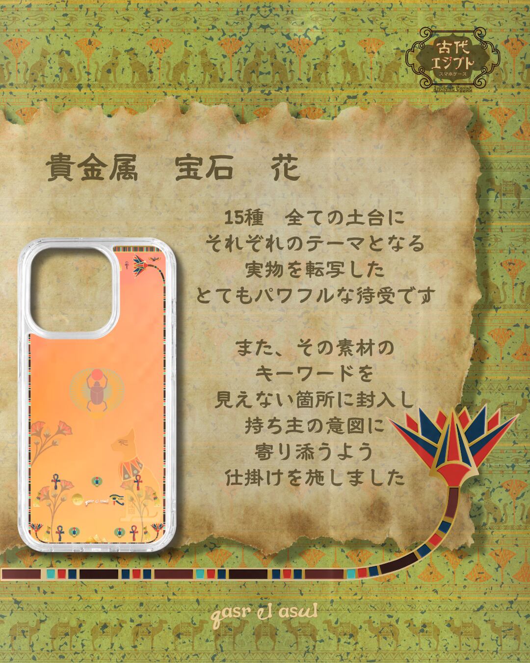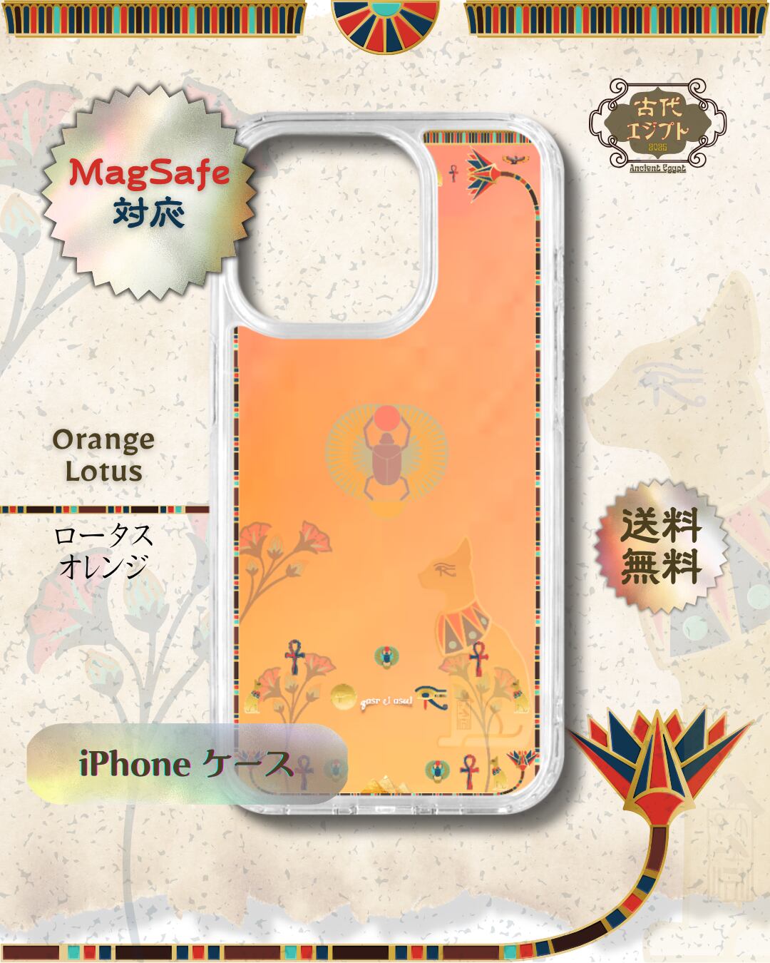 MagSafe対応| Ancient Egypt 古代エジプト|オレンジロータス|耐衝撃 iPhoneケース