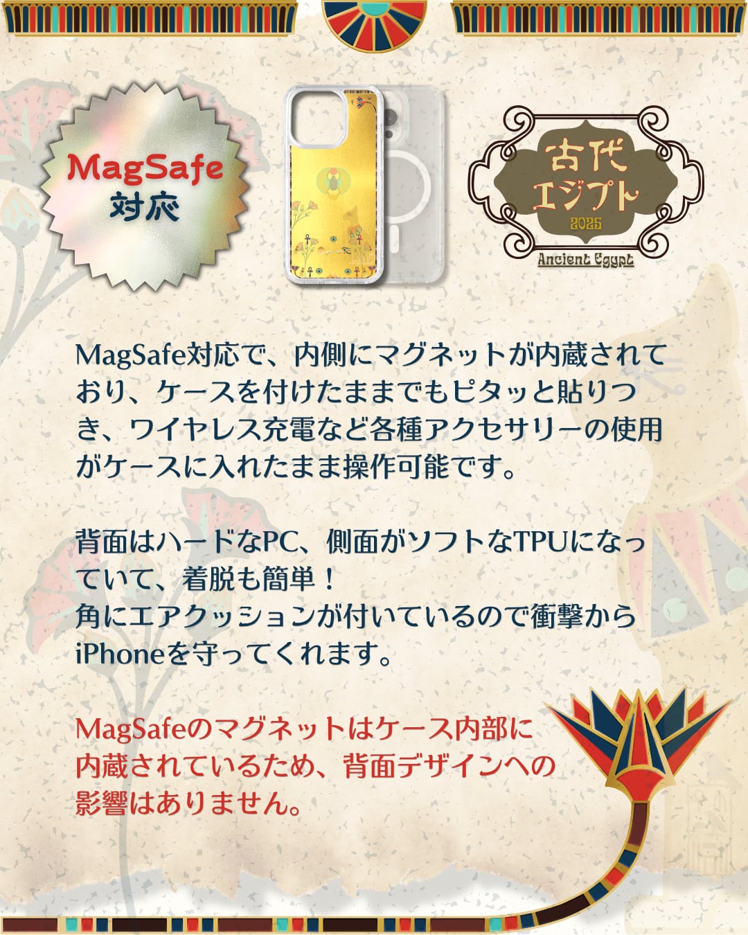 MagSafe対応| Ancient Egypt 古代エジプト|14金ゴールドカラー|耐衝撃 iPhoneケース