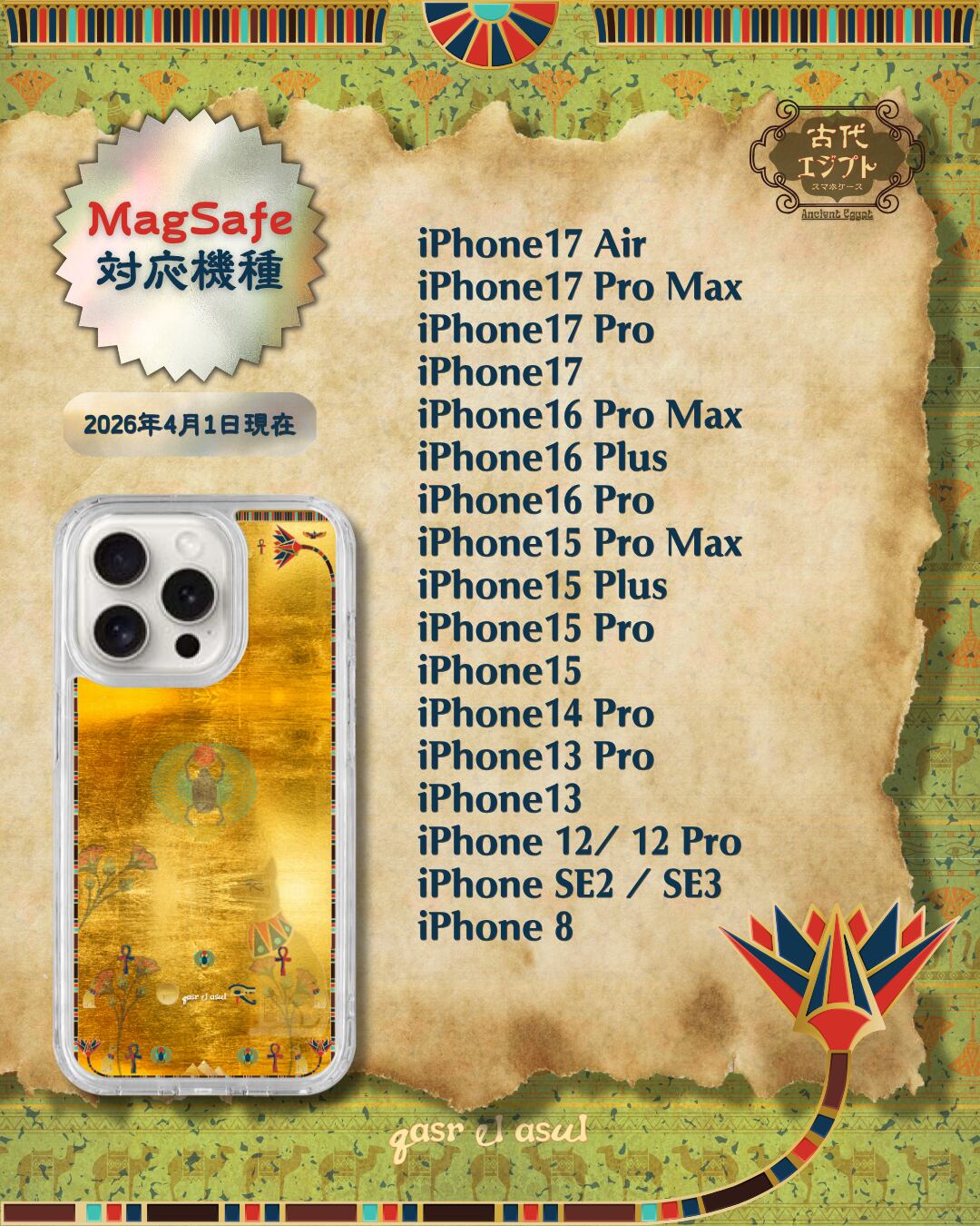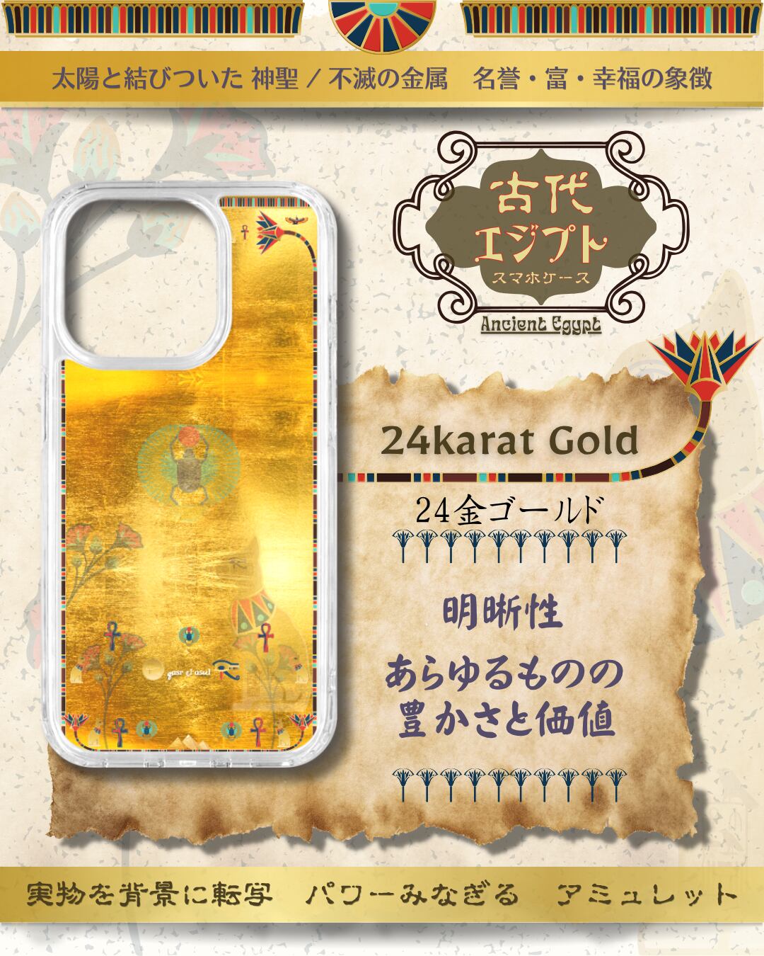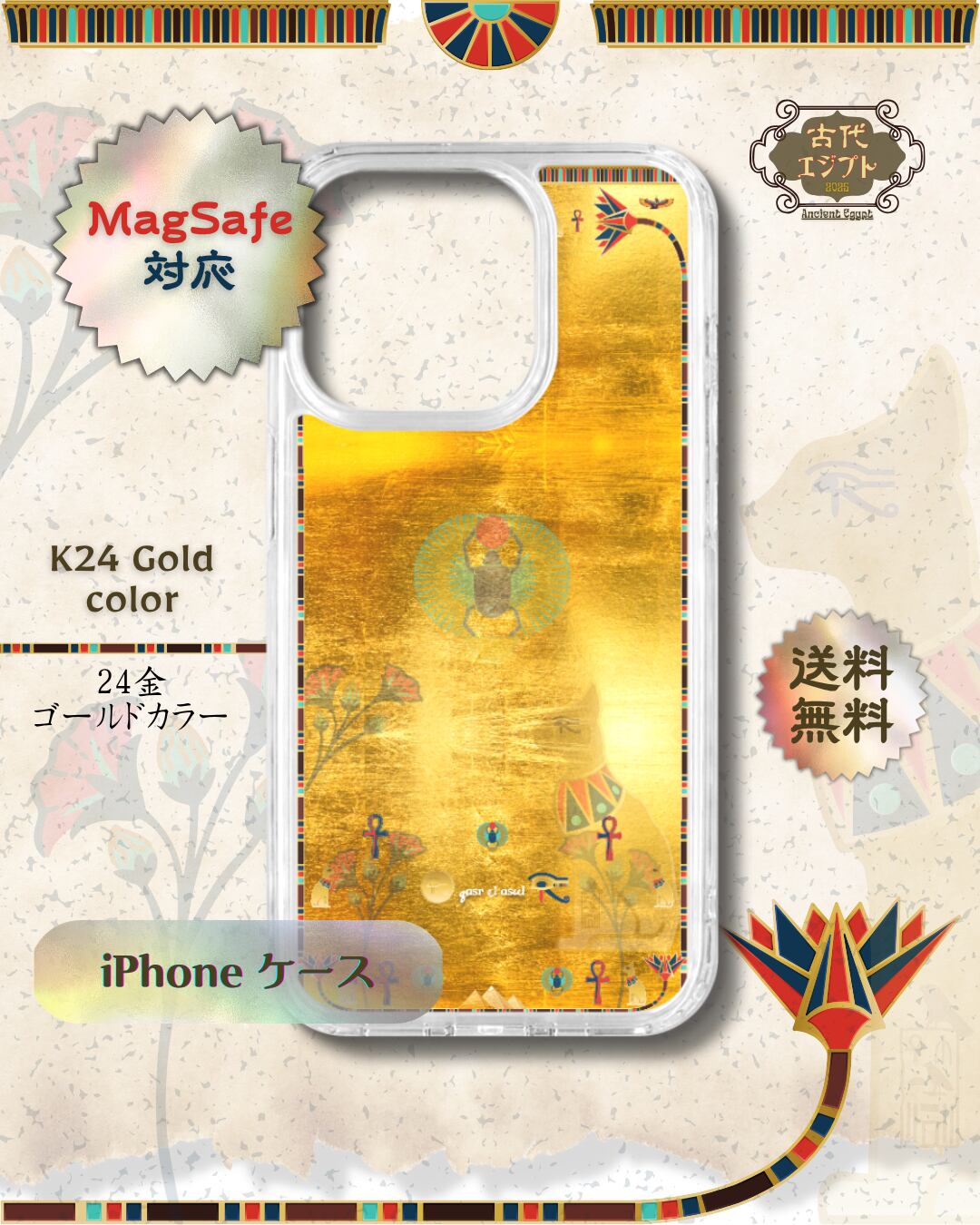 MagSafe対応| Ancient Egypt 古代エジプト|24金ゴールドカラー|耐衝撃 iPhoneケース