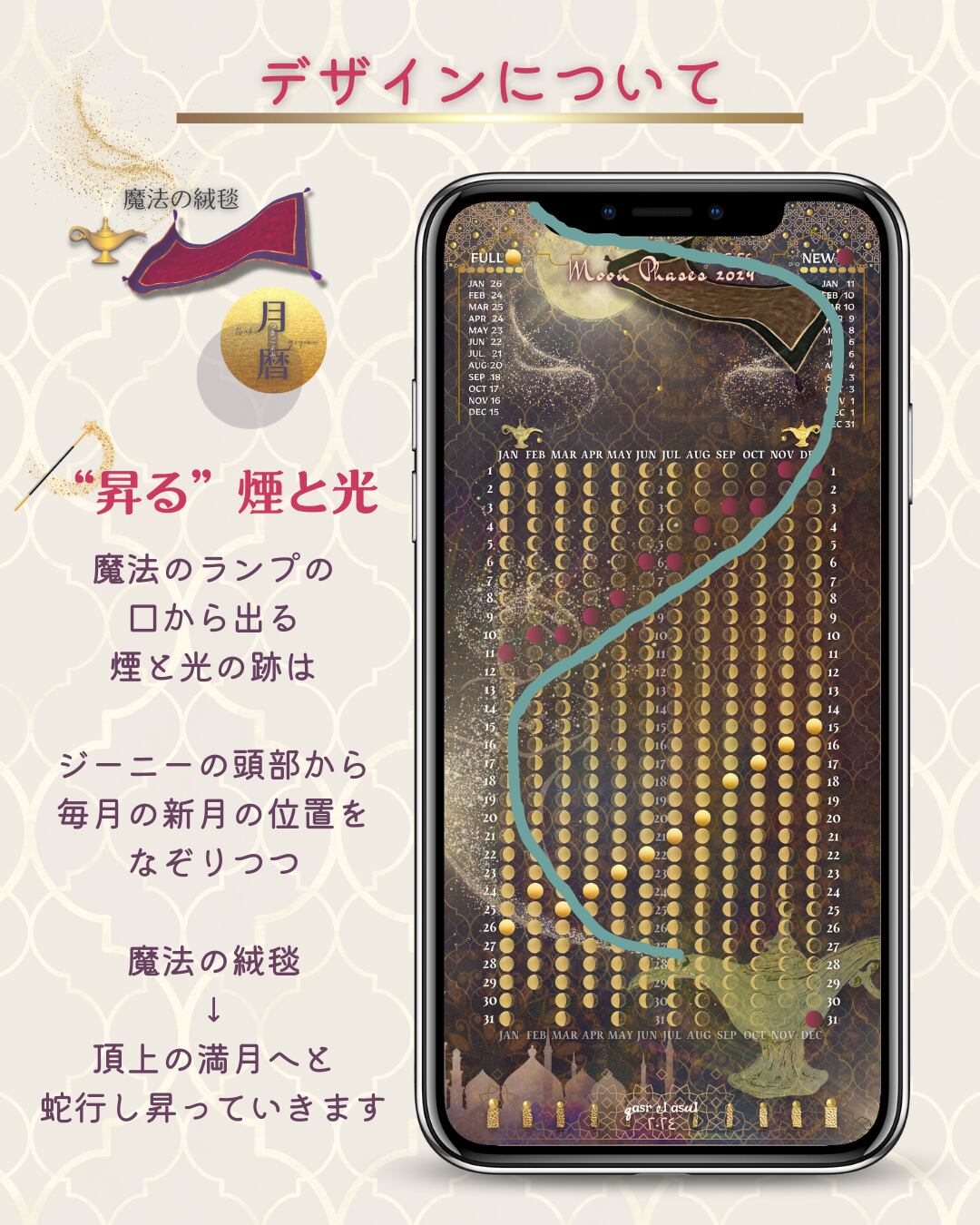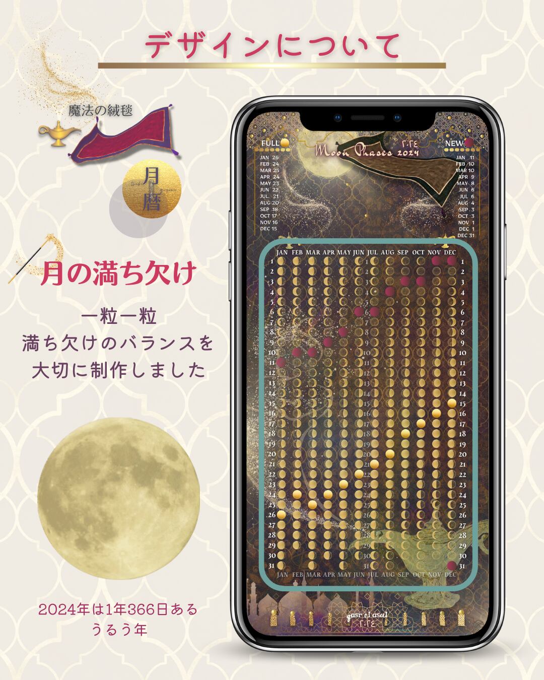 MagicCarpet_moon_phase_calendar2024_月暦_魔法の絨毯_ムーンカレンダー_Dates_GOLDRNBROWN_デーツゴールデンブラウン_なつめやし.zip