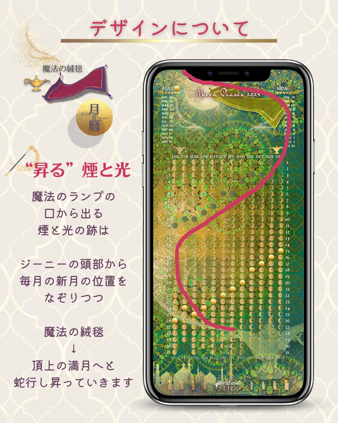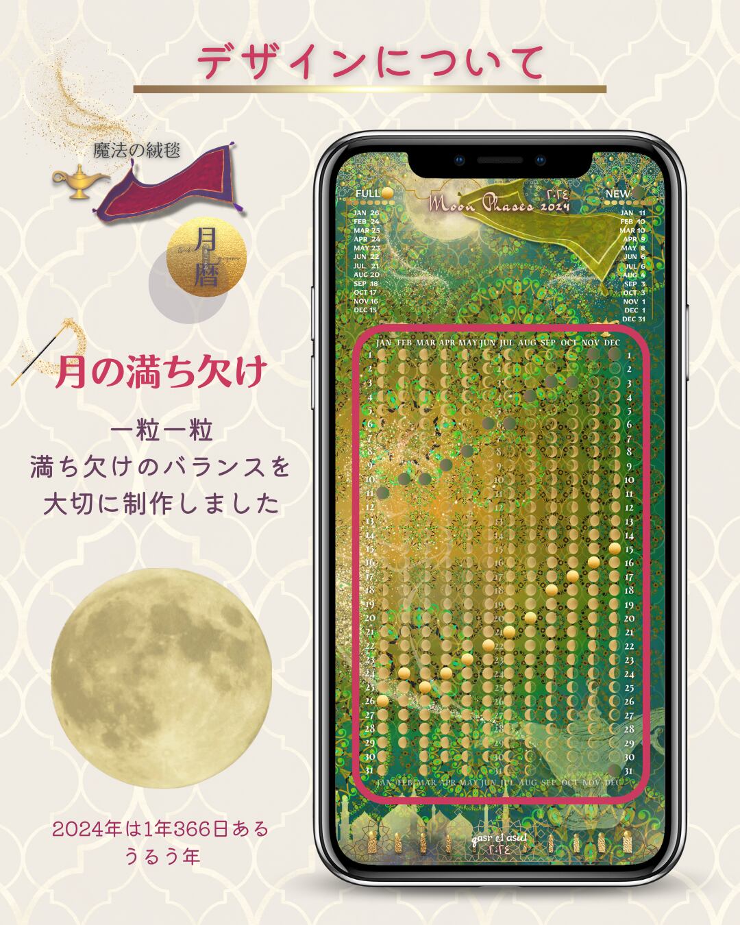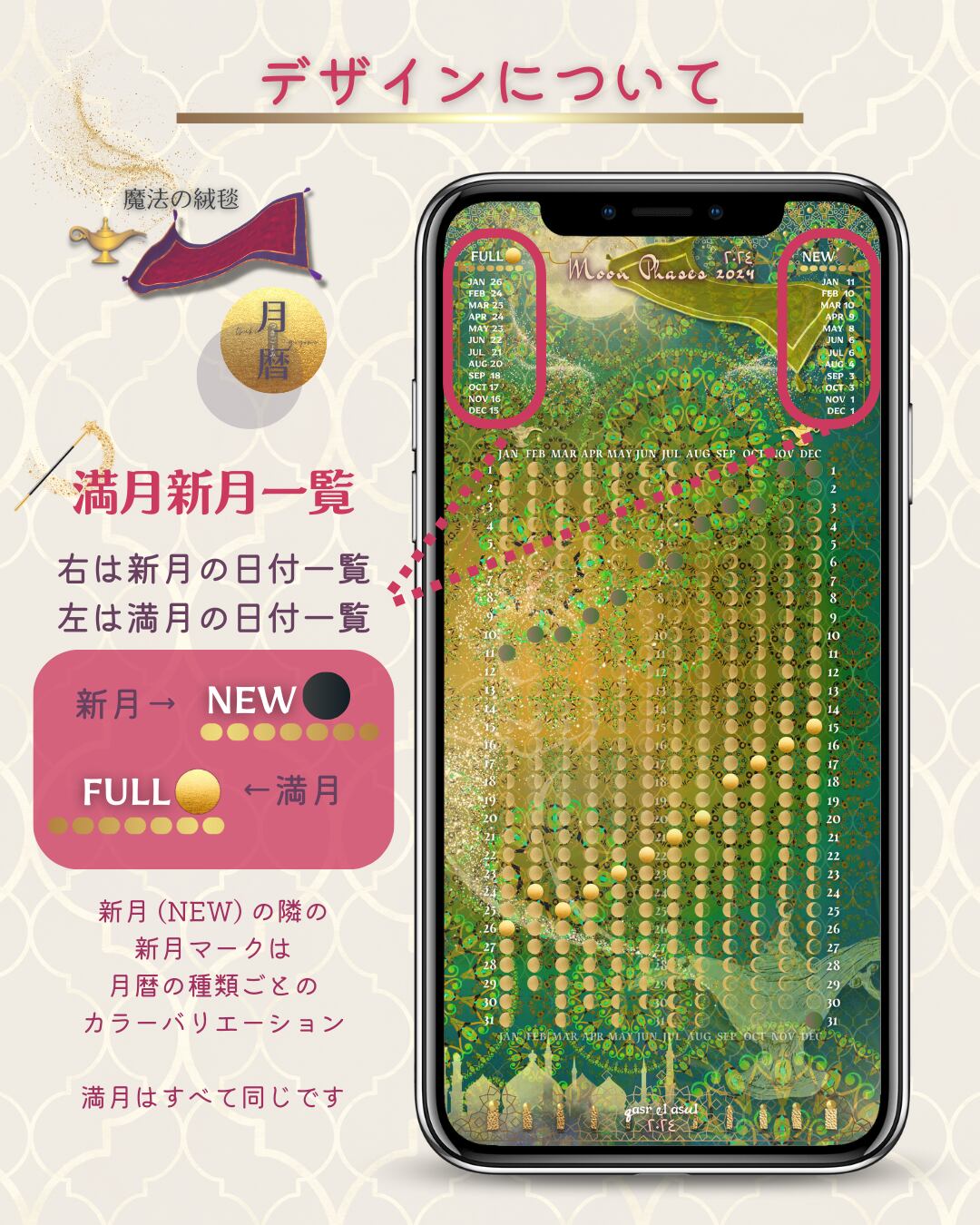 MagicCarpet_moon_phase_calendar2024_月暦_魔法の絨毯_ムーンカレンダー_KiwiFruit_FRESHGREEN_キウイフルーツフレッシュグリーン.zip
