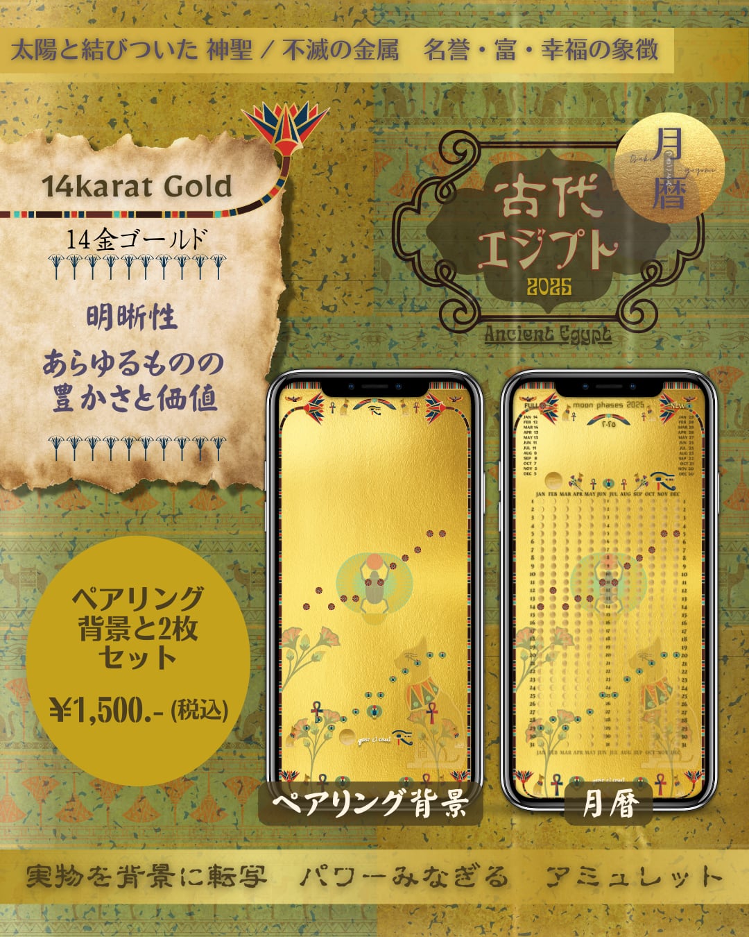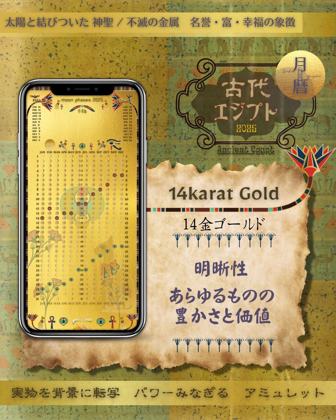 14karat_Gold_Ancient_Egypt_moon_phase_calendar_古代エジプト_月暦_ムーンカレンダー_14Kゴールド_2025.zip