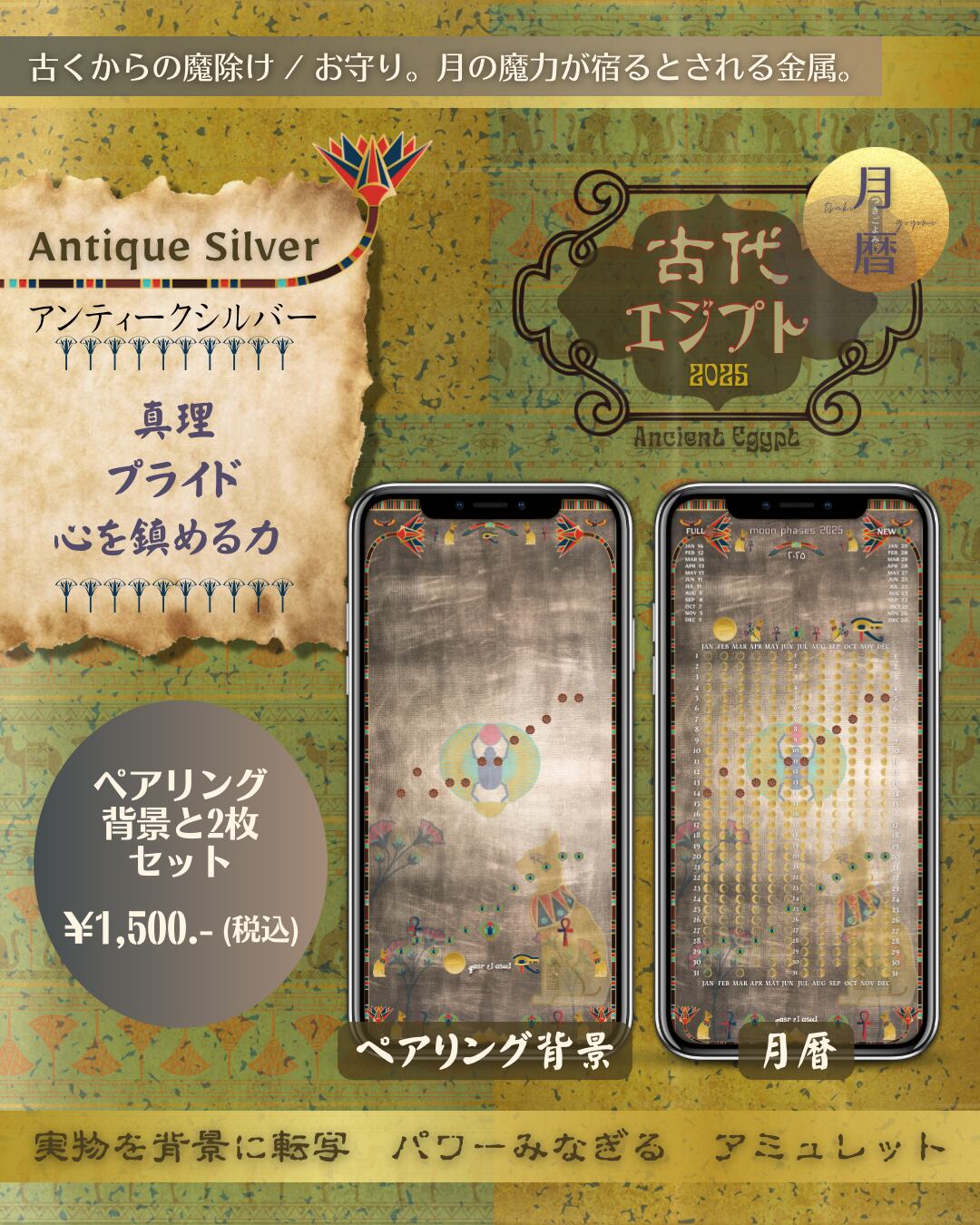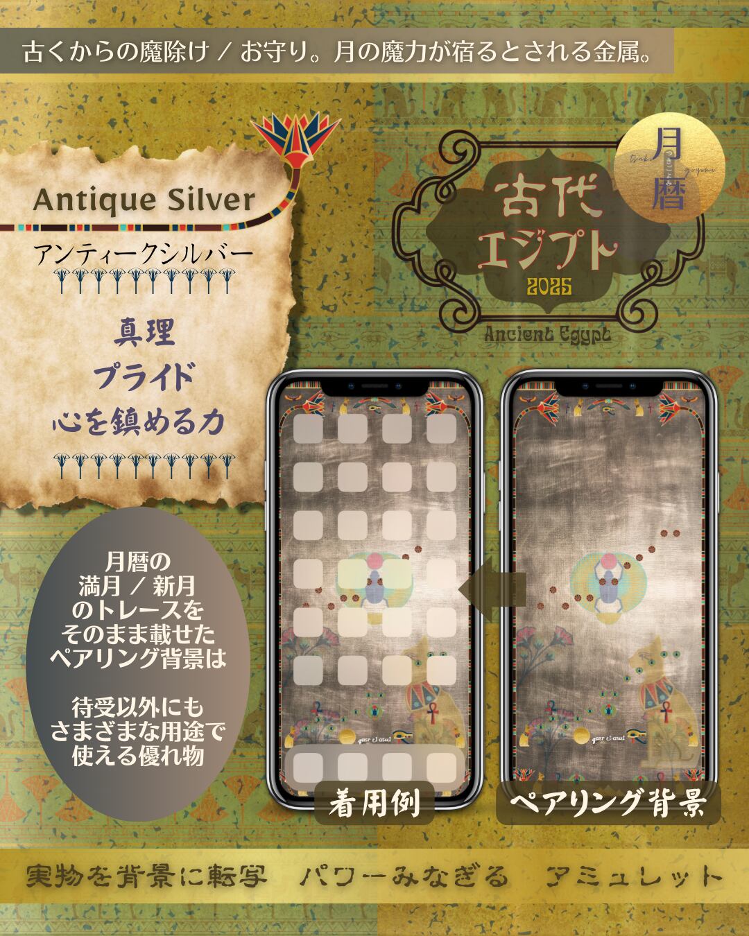 Antique_Silver_Ancient_Egypt_moon_phase_calendar_古代エジプト_月暦_ムーンカレンダー_アンティークシルバー_2025.zip
