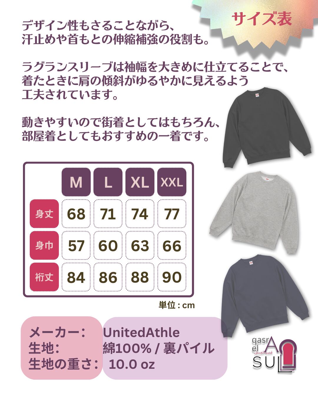 選べるスウェット生地カラーは3色
